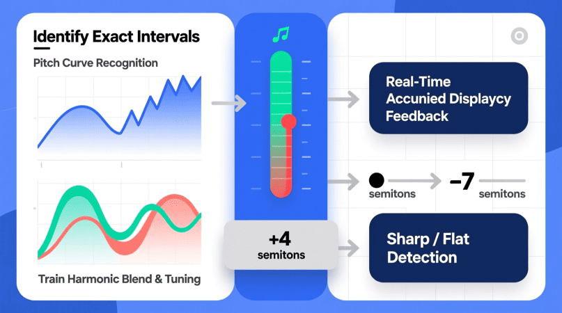 Interval AccuracyIntonation across distancesVisual ±cents pitch feedback