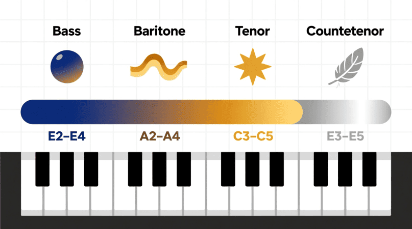 The average vocal range for men spans from C2 to C4, but individual ranges vary greatly depending on physiology, training, and vocal type. Knowing whether you’re a bass, baritone, tenor, or countertenor can help you choose the right songs and develop better technique. With proper training and vocal care, every male singer can build a stronger, more flexible voice over time.