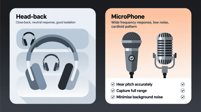If you’ve ever struggled to stay in tune while practicing, your gear might be holding you back. Using the right headphones and microphone makes pitch training easier because you hear your voice or instrument clearly and your pitch detection tool captures accurate readings.