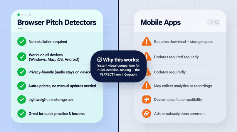 | Feature | Browser Pitch Detectors | Mobile Pitch Apps |