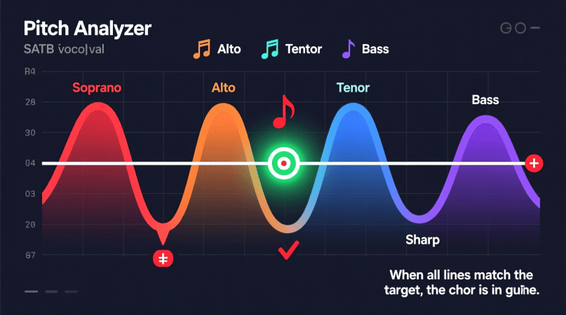 Singing in a choir means blending voices into one unified sound. But intonation — staying in tune with the group — is often the hardest part. The Voice Pitch Analyzer helps choirs improve pitch accuracy, blending, and tuning consistency in real time.
