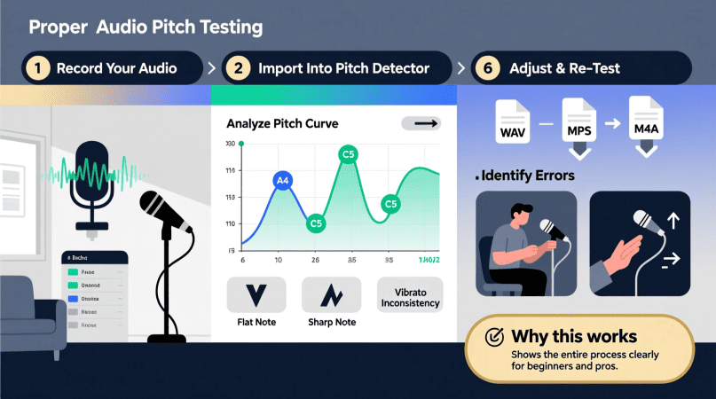 This guide covers best practices for testing pitch accuracy in recorded audio and getting the most reliable results.